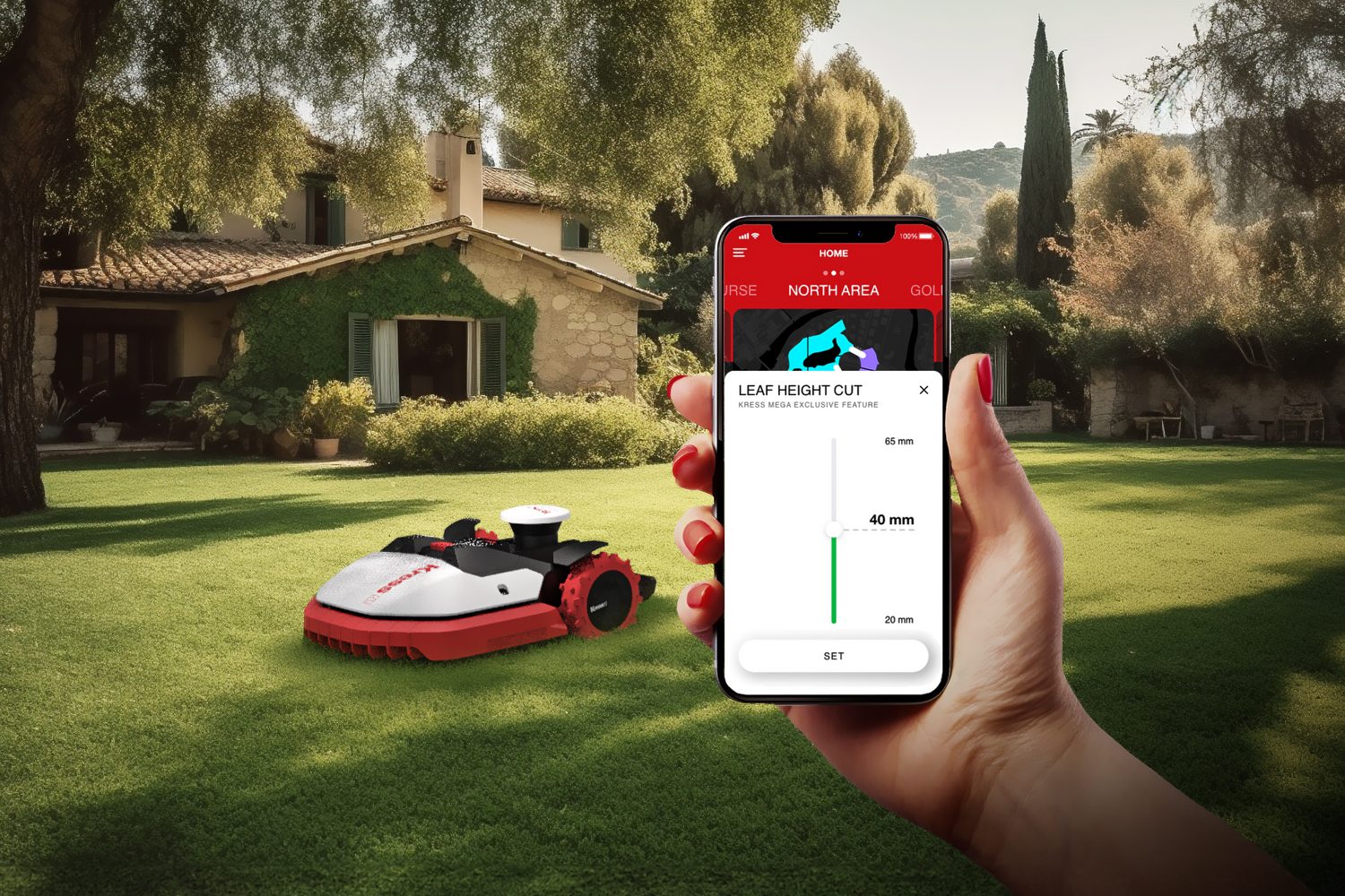 Mit der elektronischen Schnitthöhenverstellung des Kress Mähroboters wird die Pflege Ihrer Grünflächen zum Kinderspiel. Über einen einfachen Schieberegler in der Kress-App können Sie die Schnitthöhe ganz nach Ihren Wünschen anpassen und so eine maßgeschneiderte Grasnarbe erzielen.