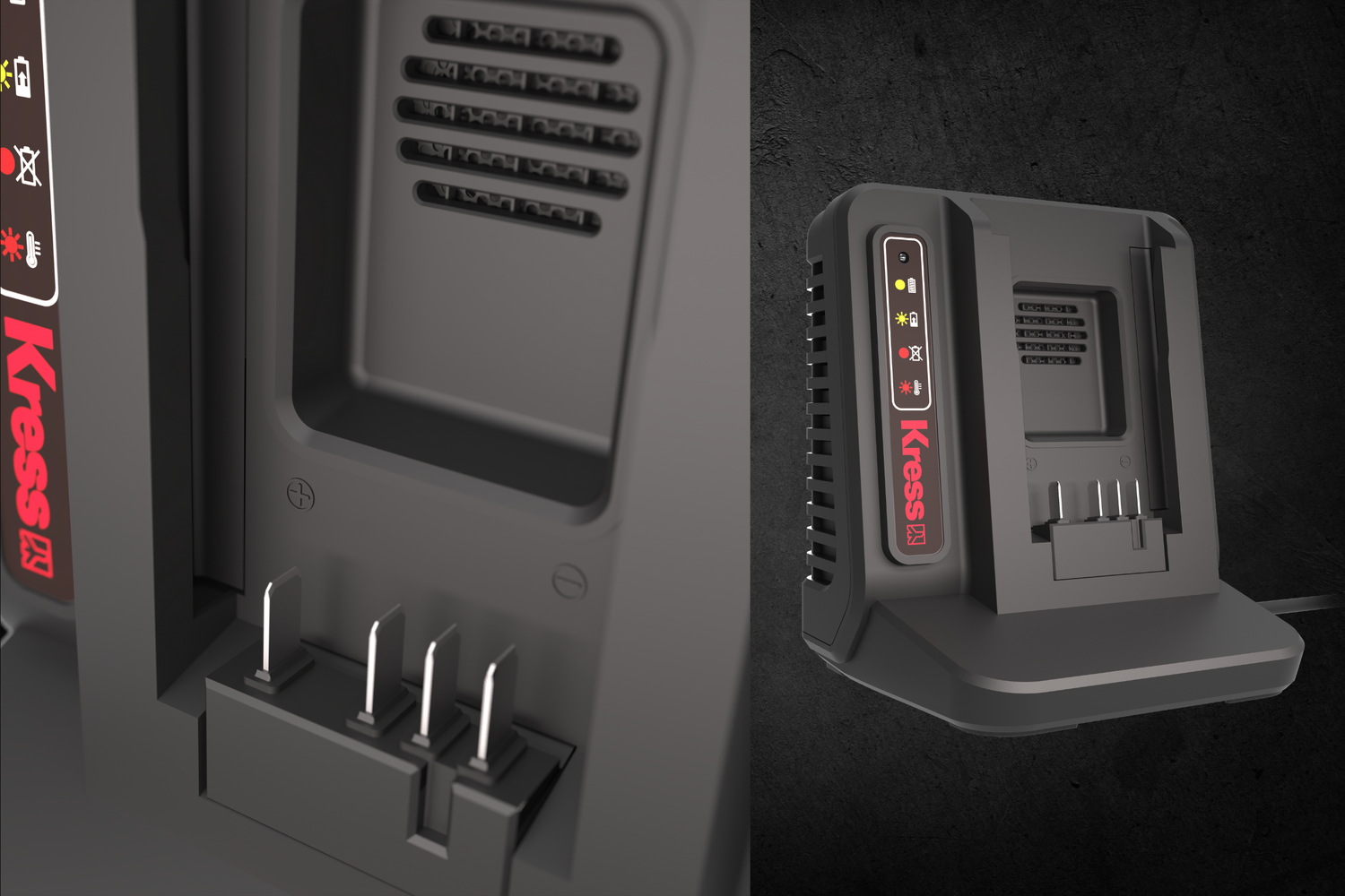 - Single-Port-Ladegerät: Speziell entwickelt für Kress 60V-Akkus, um eine zuverlässige und schnelle Aufladung zu gewährleisten.