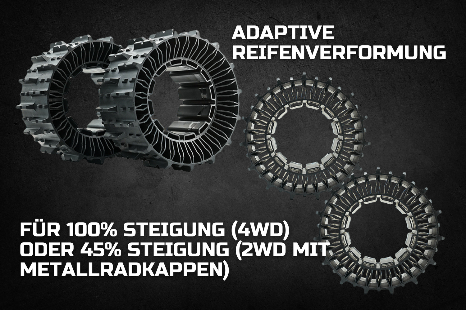 - S1 4WD + 2 Paar verformbare Reifen → bis 100 % (45°)